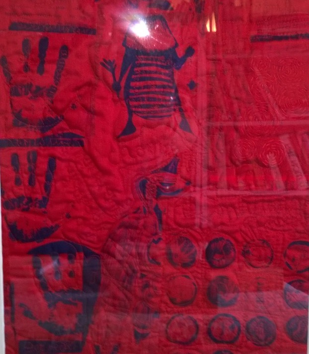 And……, in the brief moments when I hared around trying to see stuff…Managed to get to see Sadies Plaice which is fab work by Kate Jenkins and met and talked to Amanda Clayton who is showing some gorgeous work with Vivian Prideaux. Also Sue Dove and Jill Denton’s work blew me away…never seen their stuff in the flesh apart from a couple of small pieces by Sue Dove in a gallery in St Ives last year… Fabulous!! Love them ! Quilters Guild pawns are fabulous… Just look at the faces and see if you can spot the chuppa chup and the knitting bishop… Fabulous!!! SAQA have some amazing quilts too…my favourite was Tomato Soup by Jim Hay https://www.saqa.com/memberArt.php?cat=8&ec=3&ex=47#artists. Fantastic story!