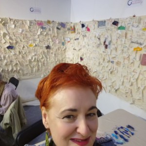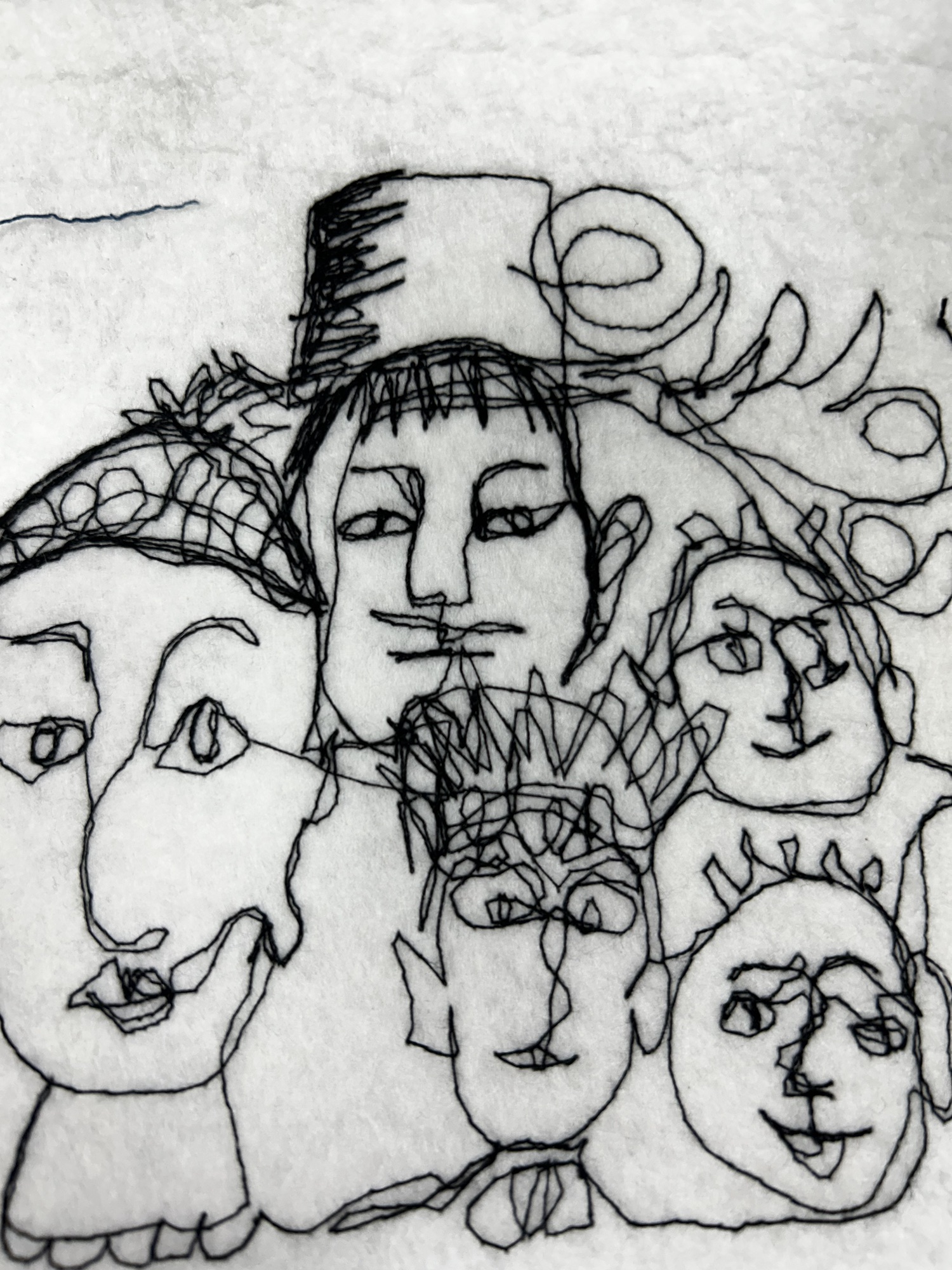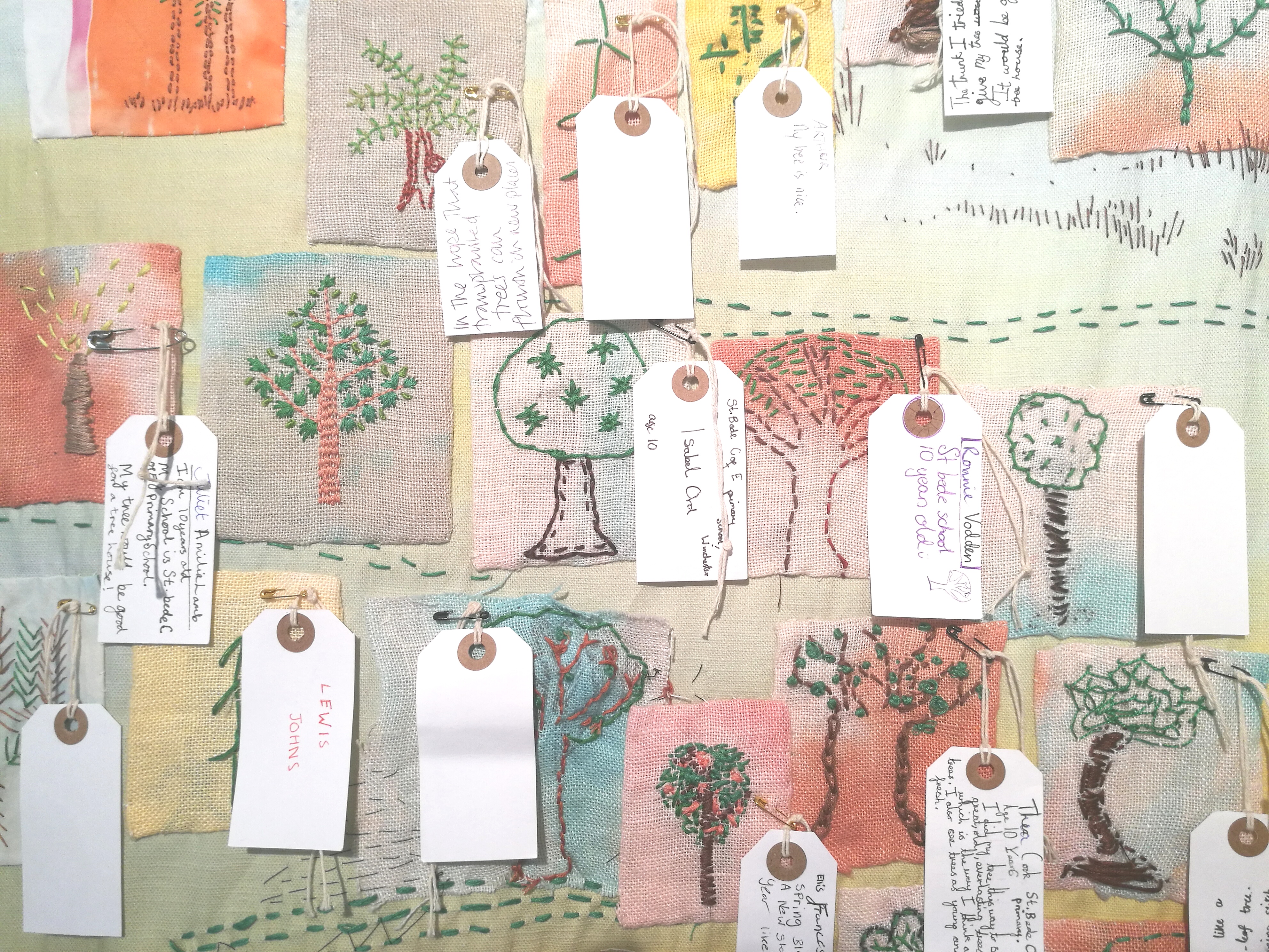 Over the summer I did another morning stitching at the theatre and went to see ‘The Meeting’ by Charlotte Jones -met her briefly at the directors talk for the play where audience members were encouraged to take part in my ‘Everyone is an Artist’ project. There will be piece to celebrate the outcome of this in the exhibition…I hope you managed a label…if not you could add to it when it is at the theatre from the 15th September.