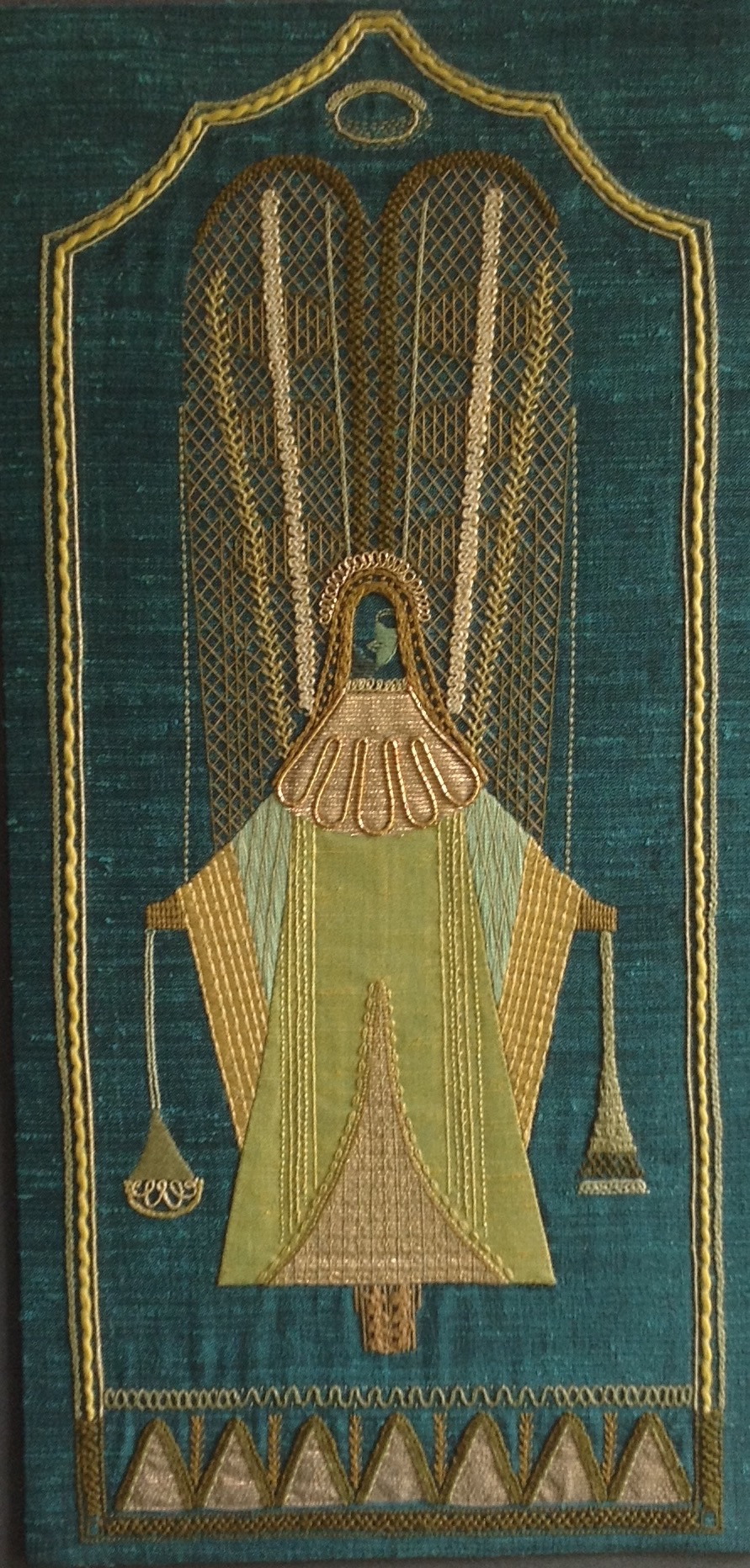 oes next. Great church for venue rebuilt by Mr Wren after the great fire. Bought the amazing book of Miss Dean’s work that was brought out in 2011 on the centenary of her birth and talked to her archivist. Read it on the train ride home. goodness she was a power house!!! Apart from all the fabulous photos of her work I really liked the ten commandments for the Deanery created by some of her students including gems like ‘ In the beginning of thy work thou shalt ask thy teacher. Thus shalt thou save thyself many problems.’ I remembered be blown away by her work at the knit and stitch in 2011.! Saving up for my goldwork course at the RSN…just need to fix some dates!! My fine stitch skills …still need much work but I love to learn